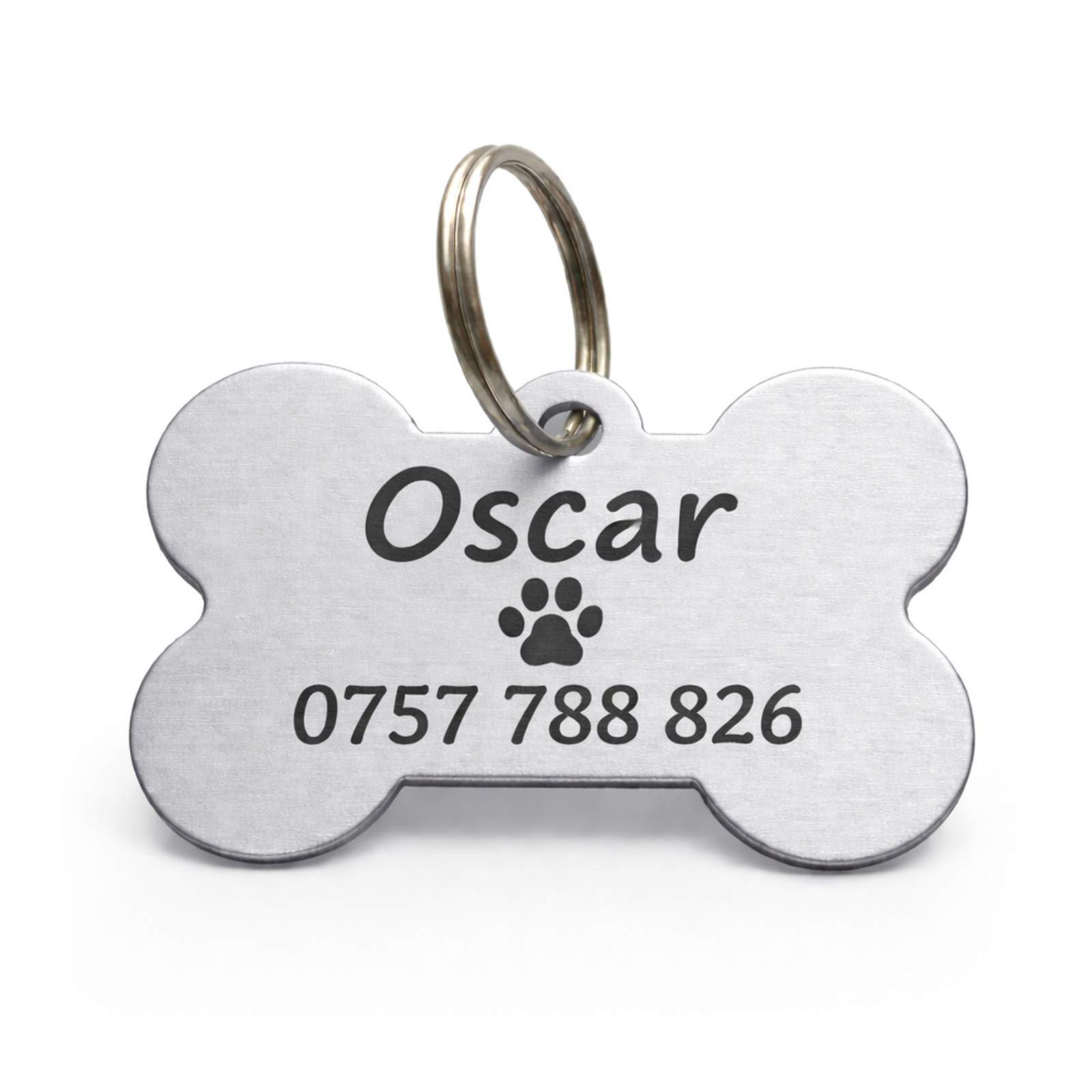Poți grava numele câinelui, un număr de telefon și, opțional, adresa. Recomandăm informații clare și ușor de citit.